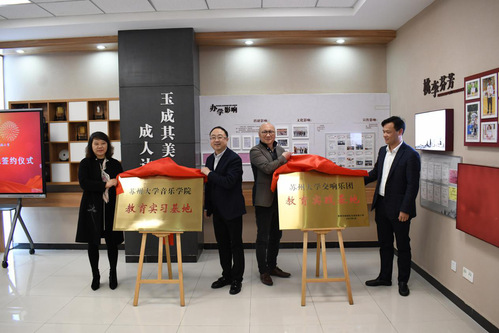 院长吴磊、副院长魏正启,相城区教育副局长缪芙蓉,相城高新区(元和街道)党工委委员王志强共同为“P站 教育实习基地”和“P站 交响乐团教育实践基地”揭牌。